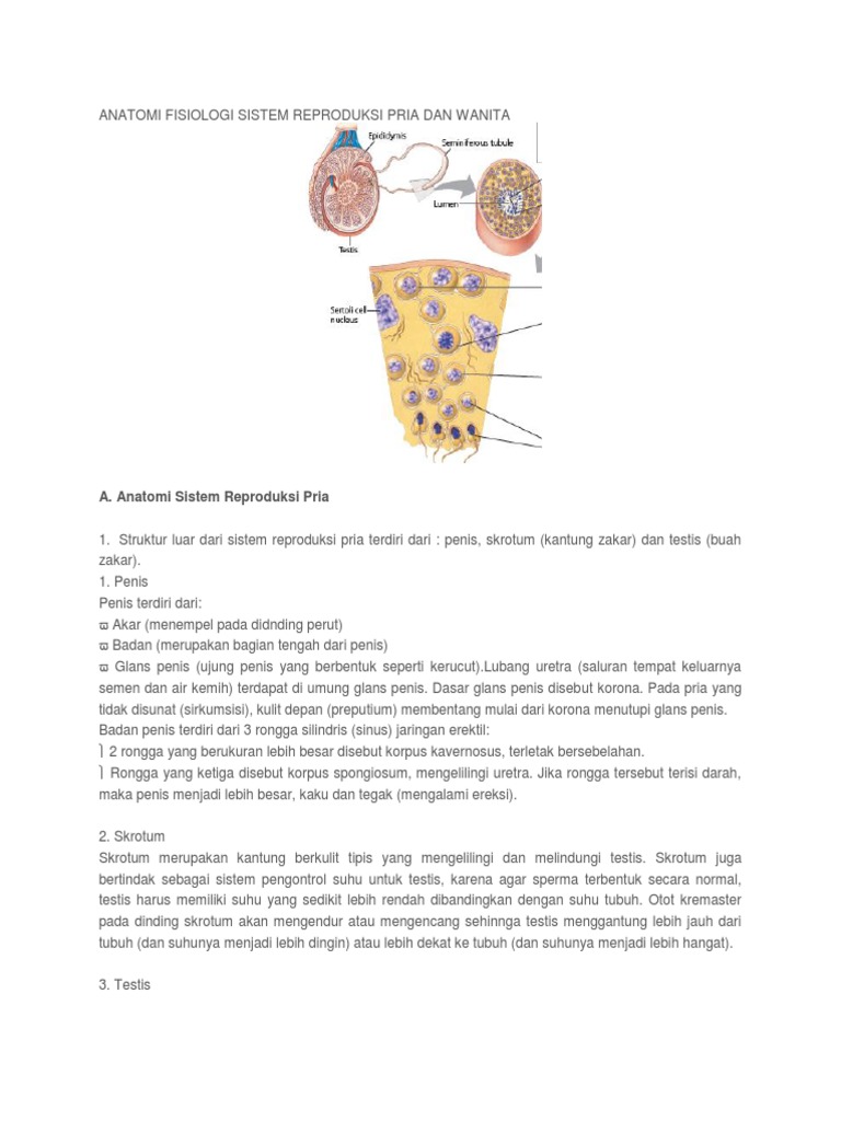 Kantung tersebut dinamakan kantung pelir atau skrotum. Testis adalah kelenjar kelamin jantan pada hewan dan manusia. Mereka adalah saluran yang menghasilkan sperma mereka berada di dalam beberapa lobus yang membentuk septik testis yang bermula dari tunica albuginea dan bergabung dalam testis mediastinum. Lalu duktus ejakulatorius dan terakhir menuju ke urethra. Memiliki ukuran testis yang berbeda antara testis kanan dan kiri adalah hal yang wajar dan umum terjadi. Testis pada pria. Spermatogenesis spermatogenesis adalah proses berkelanjutan dari pembelahan sel.