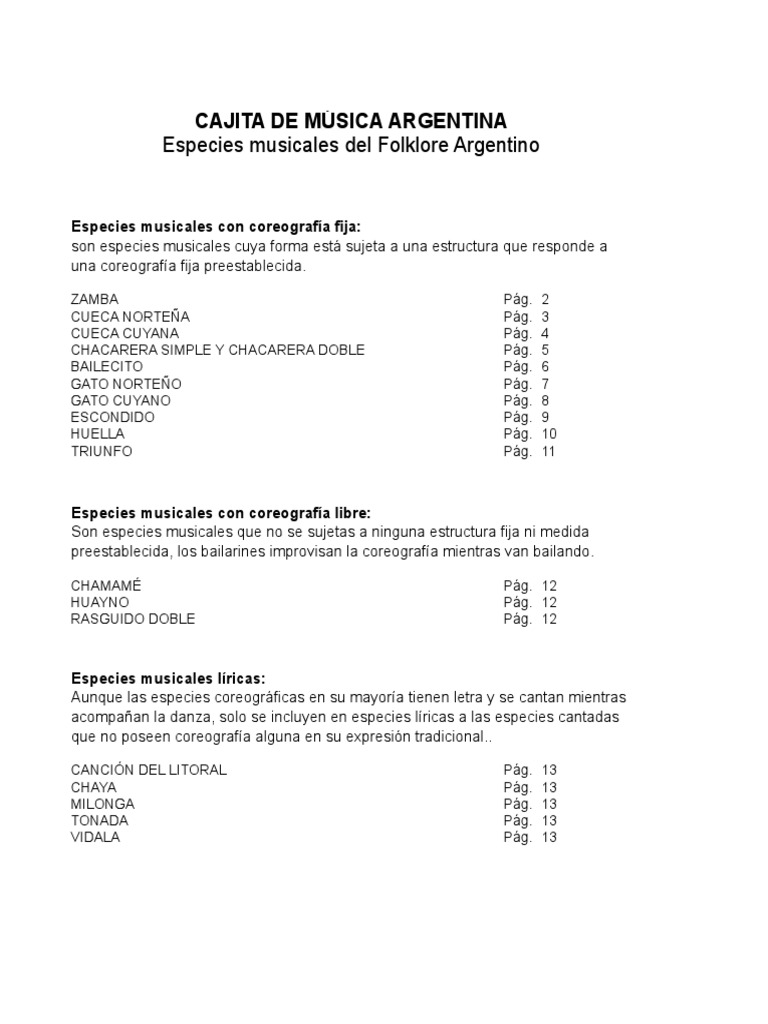 Cuadro De Formas Musicales Del Folklore Argentino Musica